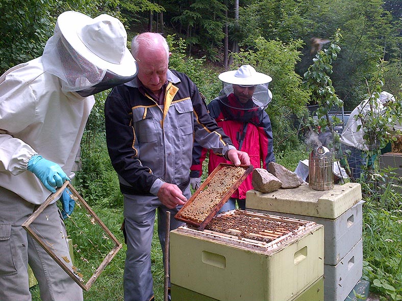 Imkervater Friedel zu Besuch auf den Etzwiesen.