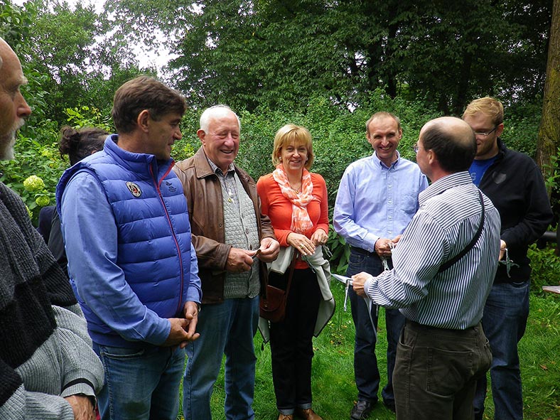 Jörg Hausmann präsentierte seinen Bienenstand und einiges zur Geschichte des wunderschönen parkähnlichen Geländes.